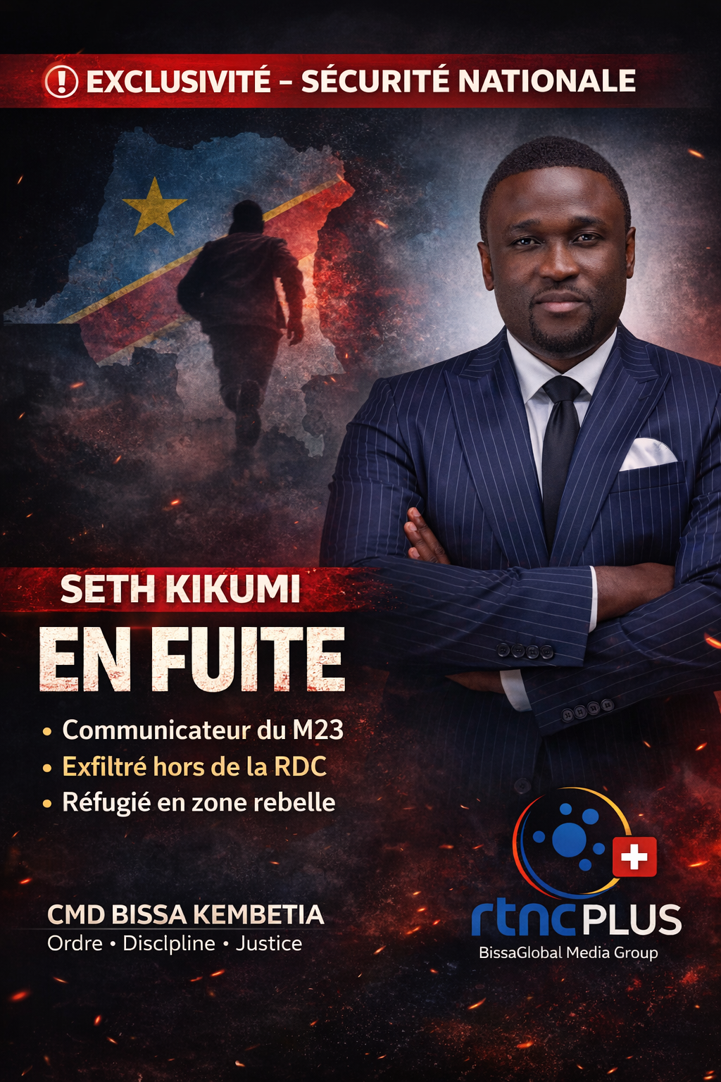 La CNC et les services de sécurité procèdent à des arrestations ciblées de personnes en connivence avérée avec le M23 : responsables politiques, généraux et officiers. Les preuves sont irréfutables : téléphones saisis, messages, contacts directs, schémas opérationnels d’un plan de déstabilisation de la RDC. Face à l’effondrement de ce réseau, certains fuient. Seth Kikumi a fui.